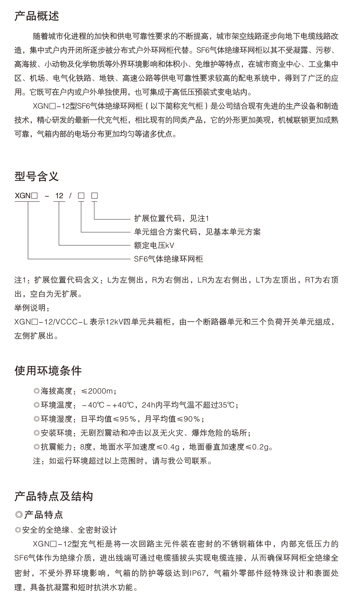 XGN口-12型SF6氣體絕緣環網柜