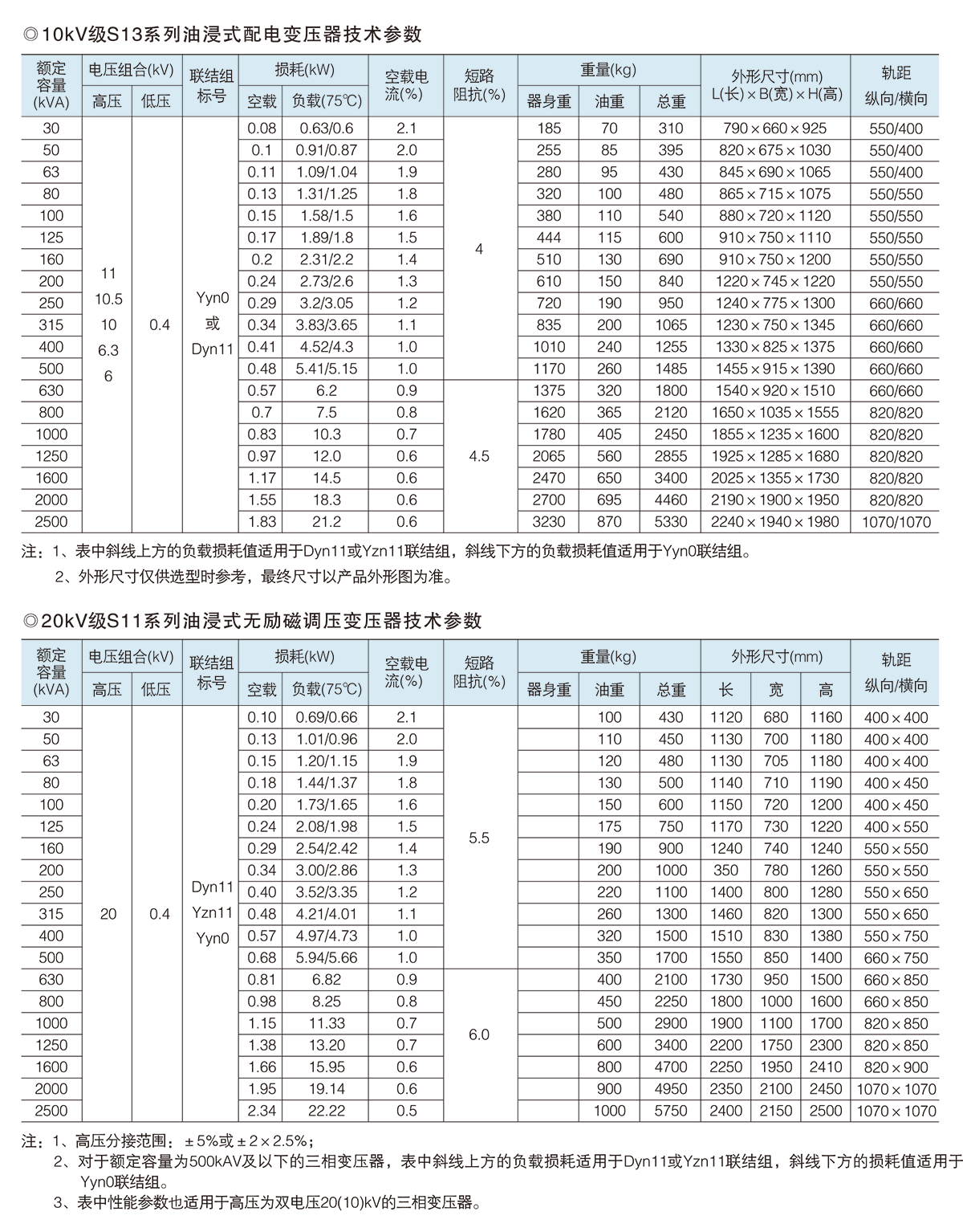 10kV級、20kV級、S11、S13系列油浸式電力變壓器